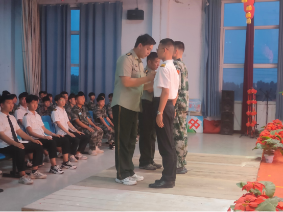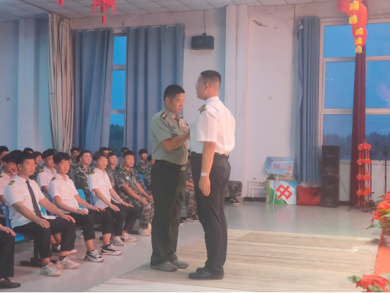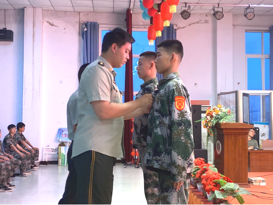政教处主任马主任、教官王杰为代理排长和代理副排长佩戴胸牌。