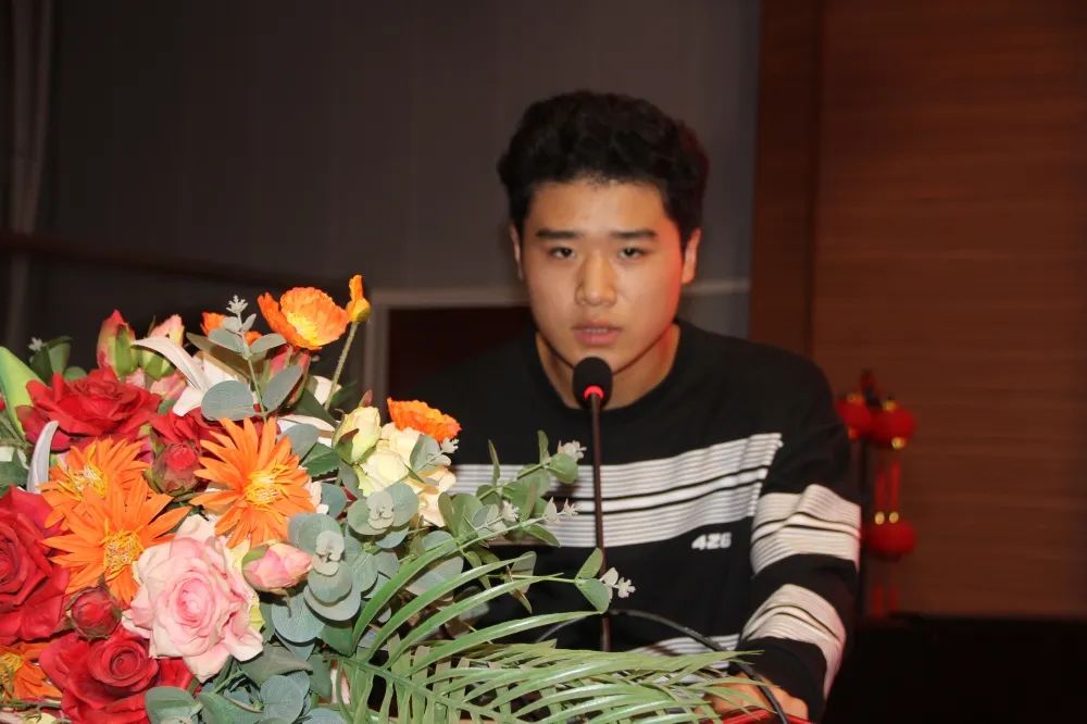 优秀学生代表龚家成同学从学习、生活两个方面,分享了自己的心得体会,端正学习态度,坚定自己的目标,只有不断努力,才能取得更多优异的成绩。